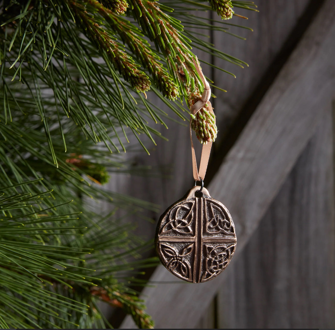 These decorations are original designs and have a pure bronze finish and cold cast ceramic resin core. Made in Ireland. Approx. 2.25" x 2.25"