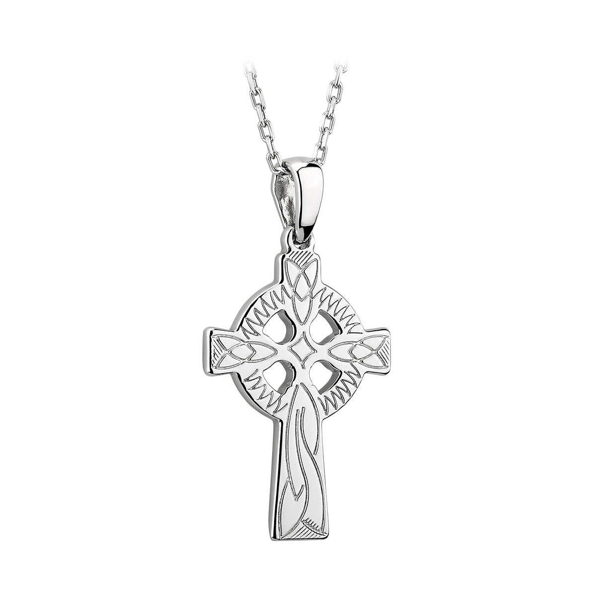 One legend tells how St Patrick saw a pagan standing stone imprinted with a circle, the symbol of the moon goddess. He is said to have blessed the stone, marking it with a Latin cross - thus creating the first Celtic Cross. This sterling silver Celtic cross has been hand engraved and pays tribute to our precious heritage of Ireland. Irish hallmarked in the Assay office at Dublin Castle. Comes with an 18" Sterling Silver chain.